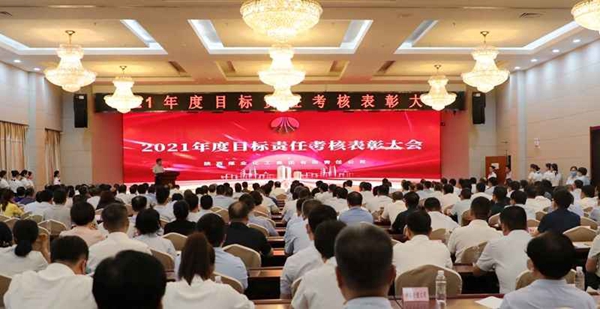 7月15日下午,陜煤集團(tuán)召開2021年度目標(biāo)責(zé)任考核表彰大會(huì)。集團(tuán)公司黨委書記、董事長(zhǎng)楊照乾,黨委副書記、總經(jīng)理嚴(yán)廣勞等集團(tuán)公司領(lǐng)導(dǎo)班子成員、準(zhǔn)高級(jí)管理人員出席會(huì)議;所屬各單位黨政主要負(fù)責(zé)人、經(jīng)濟(jì)運(yùn)行分管領(lǐng)導(dǎo)及部門負(fù)責(zé)人,集團(tuán)總部各部門副職以上負(fù)責(zé)人,陜煤股份公司、化工集團(tuán)、電力集團(tuán)公司各領(lǐng)導(dǎo)、各部門主要負(fù)責(zé)人參加會(huì)議。集團(tuán)公司黨委副書記尤西蒂主持會(huì)議。