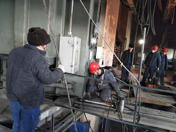 為把停產損失降到最低,參與檢修人員與包鋼維修人員密切配合,在呼嘯的寒風中,頂著-21℃的嚴寒,加班加點,爭分奪秒,日夜奮戰(zhàn),沒有一個人叫苦叫累。發(fā)電分公司發(fā)揚協(xié)作精神參與檢修,經理助理張擁軍放棄已經確定的休假,發(fā)揮自己的電氣專業(yè)特長,堅守變壓器更換現(xiàn)場把控關鍵環(huán)節(jié)的安裝,設備科副科長韓永清帶領維修工主動承擔4#凈化沉降倉的技術改造。電化分公司經理層張憲軍、金海偉、楊文義分工負責,親自帶領車間各級管理人員堅守一線檢修、生產現(xiàn)場,動員內部所有力量,充分利用處理變壓器的機會對4#電石爐進行了一次系統(tǒng)性的檢維修。公司各職能部門主動作為,了解檢修情況,及時協(xié)調解決檢修中存在的困難。公司領導分工負責,通宵達旦指揮現(xiàn)場檢修安全、質量、進度。正是有這樣一支團結拼搏、埋頭苦干、能打硬仗的能源干部員工隊伍,4#電石爐兩臺變壓器恢復工作和電石爐本體檢修僅僅用了不到9天時間,完成了15天以上的電石爐本體檢修工作量和兩臺變壓器更換工作,實現(xiàn)了檢修和生產兩不誤。
