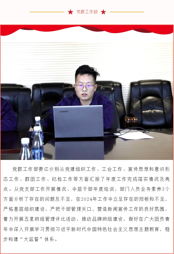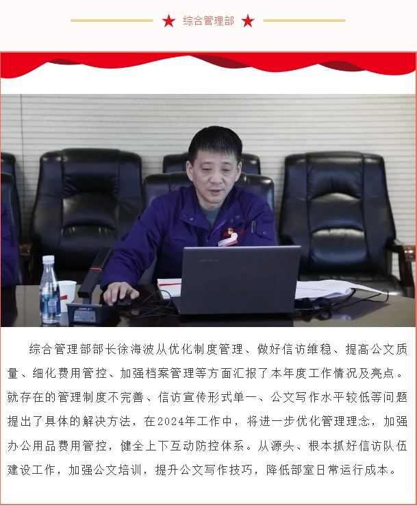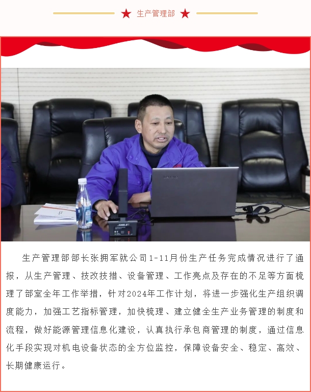12月22日,公司召開2023年工作總結及2024年工作規(guī)劃務虛會,回顧總結2023年工作完成情況,謀劃研究2024年工作目標、工作重點、工作舉措。公司在家領導班子成員、中層管理干部參加會議。